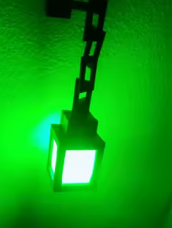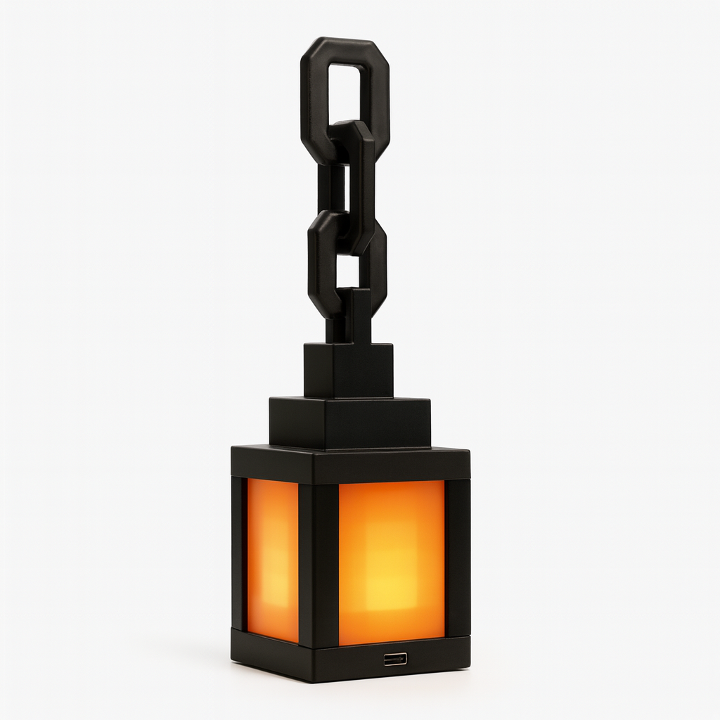 Sin cables estorbando ni luces molestas. Es ligera, recargable y la puedes poner donde quieras. El tamaño destaca sin ocupar espacio y la cadena le da ese toque pixelado brutal para tu setup. La cargas por tipo-C y siempre está lista para tus partidas.