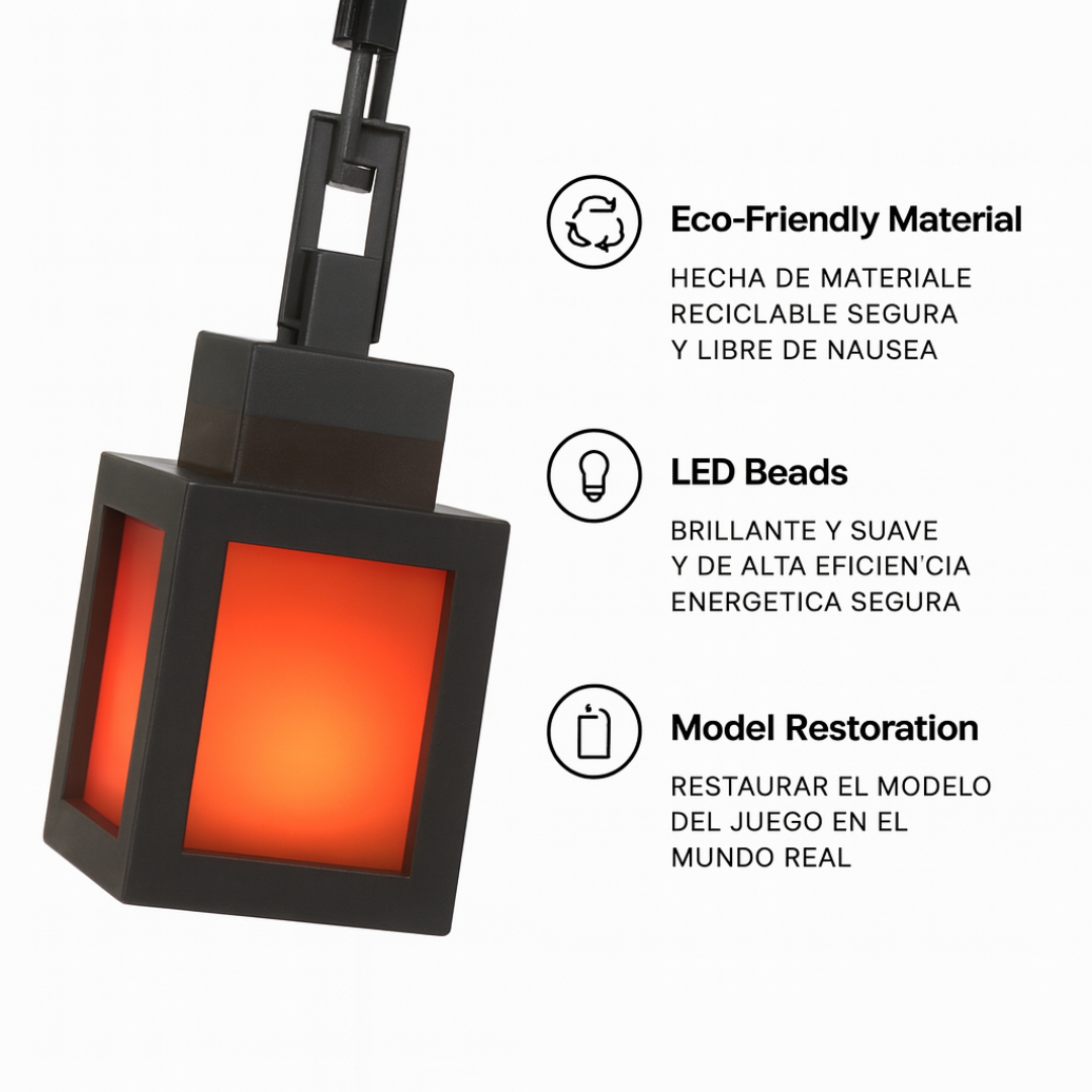 Hecha con material reciclado y luz LED suave que no molesta, incluso de noche. No tiene cables, consume poco y da ese toque pixel tipo Minecraft que hace que tu habitación se vea más tuya y más gamer.